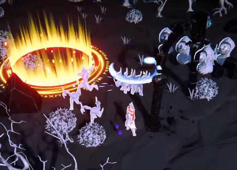 Designed it for the enemies to come in larger numbers to overwhelm the player and force them to move around and use both spells and environment to their advantage with different abilities and behavior to challenge the player